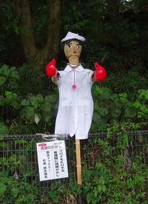 2020年、ケルネル田んぼにて実際に展示されていたかかしです。